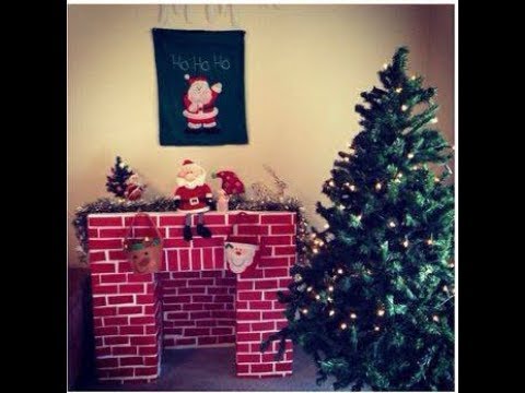 Lareira feita com caixas de papelão para decorar sua casa neste Natal